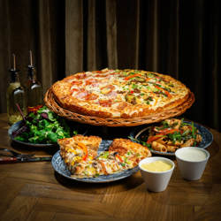 Perfekt for 4, kan deles med flere. Et variert utvalg av retter midt på bordet. Sosialt, smakfult og mettende.