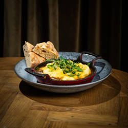 CheddardrømCheddar, sopp, purreløk og paprika. Vegetar 362,- |